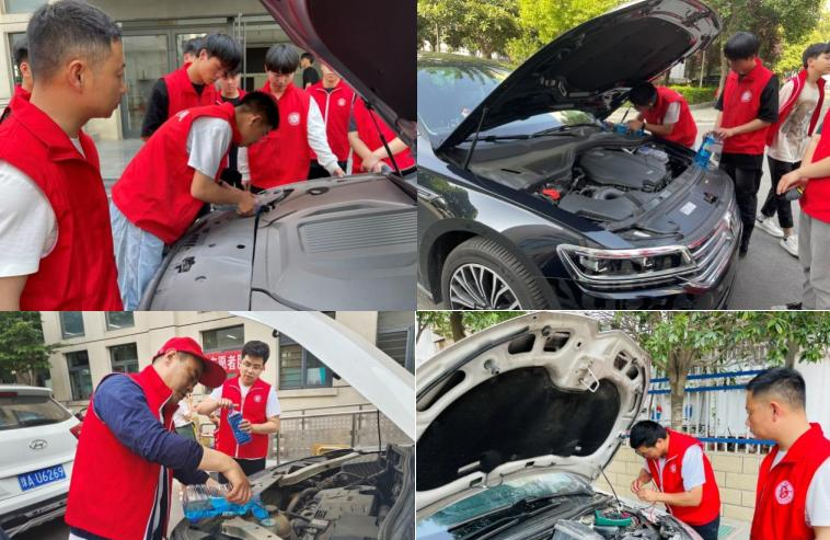 炎炎夏日,天气入暑,为了广大教职工行车用车安全,进一步深化拓展新时代文明实践活动,机电系党支部开展“汽车维修保养”主题党日活动。2023年5月18日下午16:00,机电系党支部党员及学生志愿者在汽车实训中心为全校教职工提供车辆安全检查、轮胎检查、免费加玻璃水、车辆保养使用等服务,汽车维修志愿者服务也是机电系党支部多年来坚持的优良传统。
