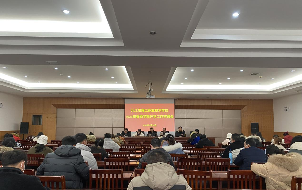 2月10日上午,九江市理工职业技术学校在图书馆三楼报告厅召开2023年春季学期开学工作布置会。校领导卢晓玲、余海、周辉、魏杭、曾广淼、王晓玲出席会议。全体教职员工参加会议。会议由卢晓玲主持。